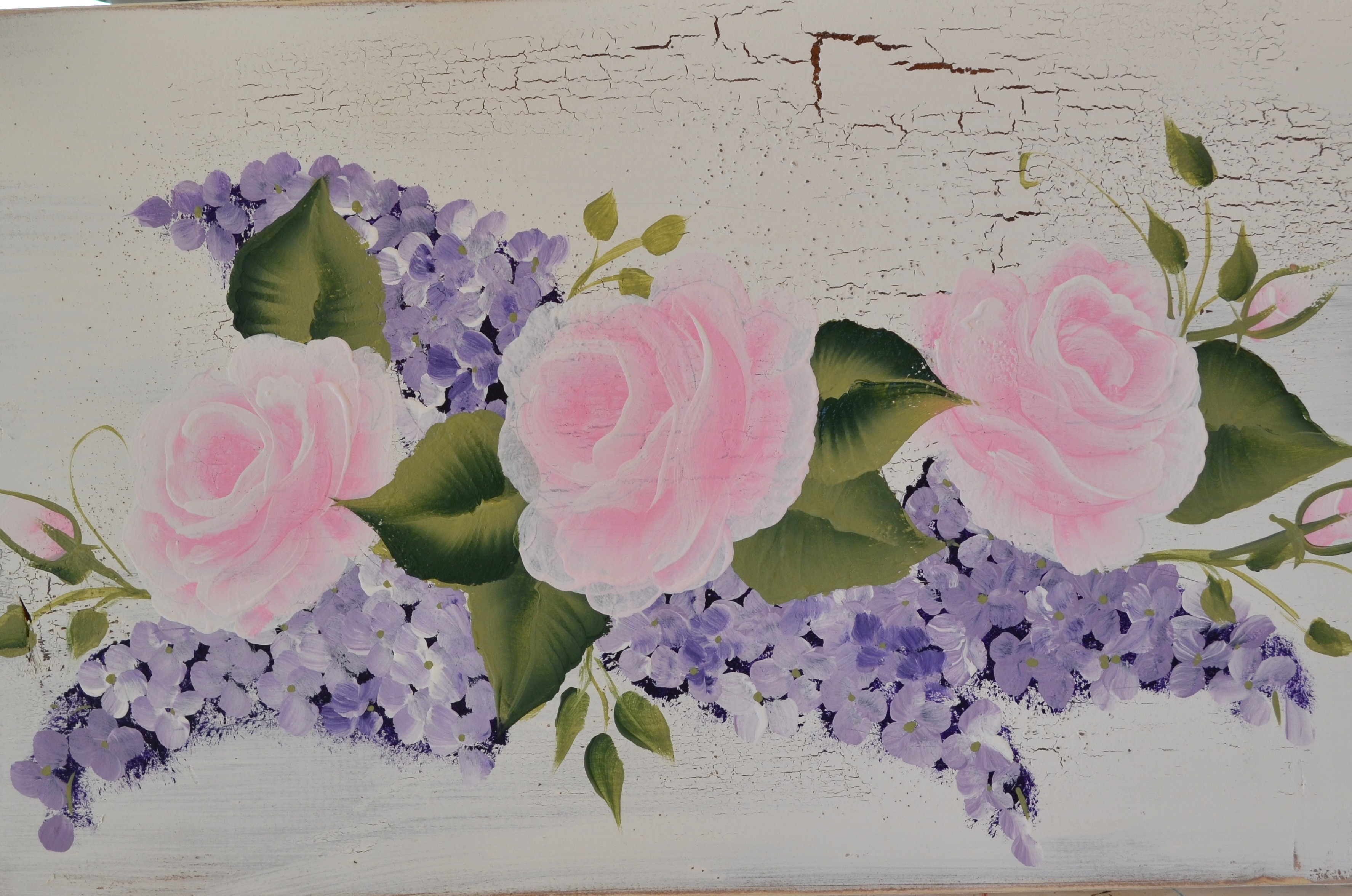 You can paint roses and lilacs quickly and easily. In addition to the painting lessons you get a pattern and the lettering to make it into a sign.