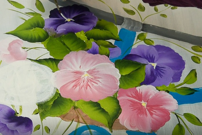 Nothing beats watching someone paint a stroke you might not understand. The full length video to paint this bicycle and the pansies is linked for you to watch anytime you need.