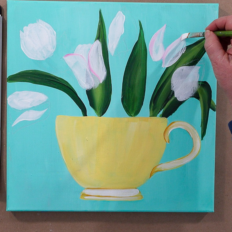 Learn how you can paint leaves, a teacup and beautiful blooming tulips one easy stroke at a time! Links to helpful lessons on the website for options.
