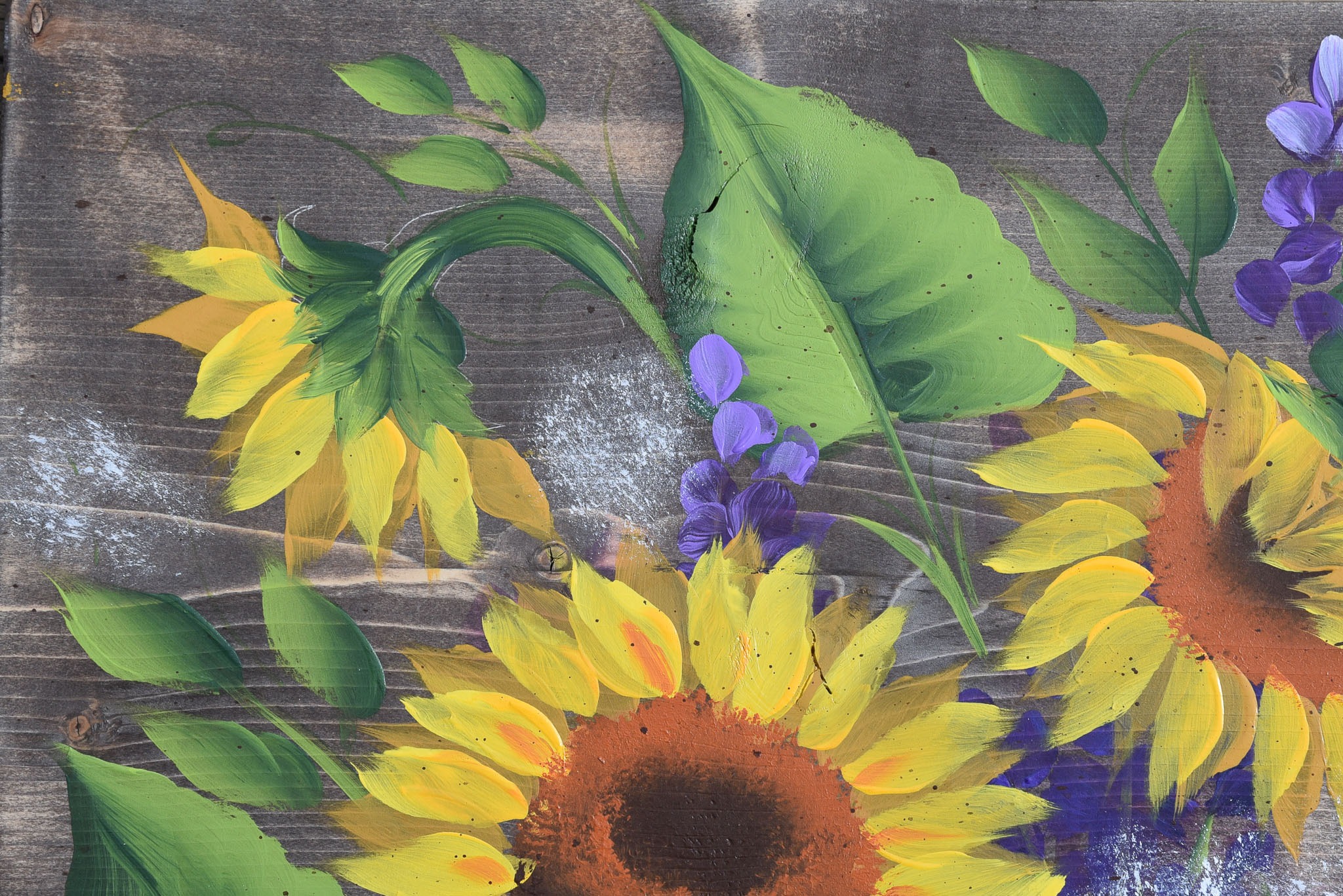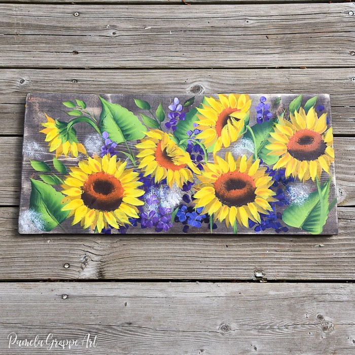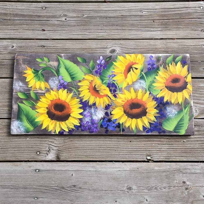 I painted this on a pine board stained a dark color. You can paint this on a stretched canvas, wood or piece of thrift store furniture!