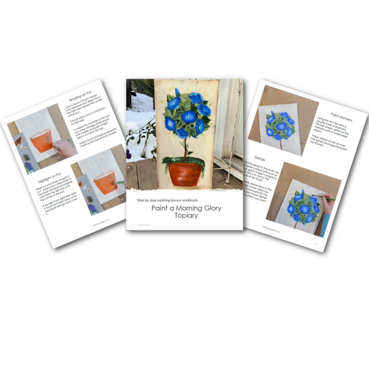Step by step instructions with photos to help you paint this gorgeous topiary in acrylics. A printable pattern is included and links to helpful videos! Download and print.